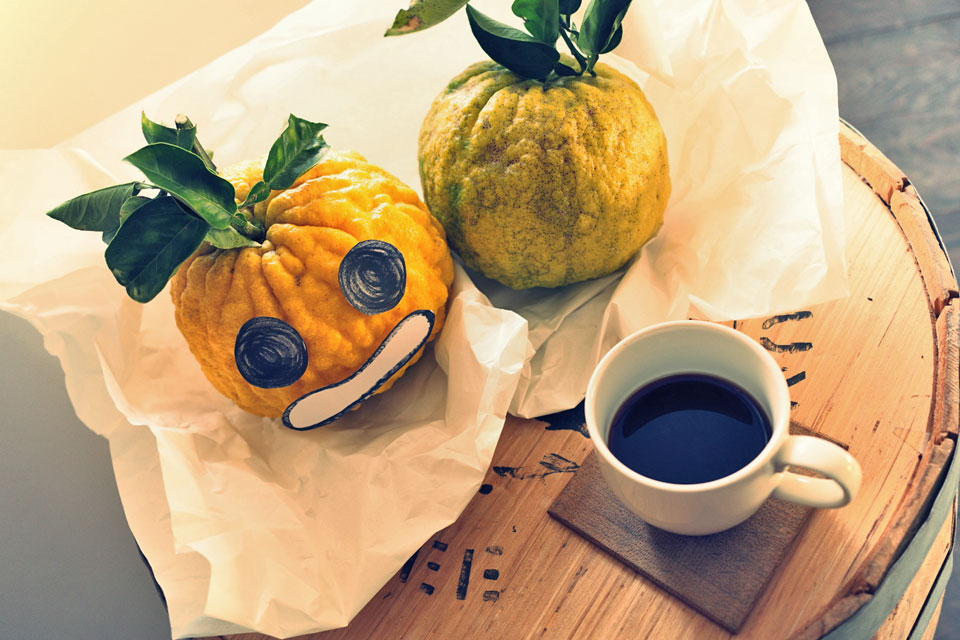 珈琲豆をお求めの紳士より頂戴したのは、約束どおり庭先でたわわに実ったという鬼ゆずでした。